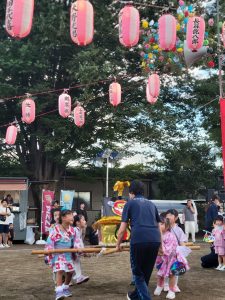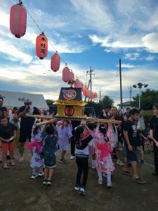 夕涼み会にて、神輿とともに無事「ねぶた」の巡行。
