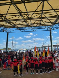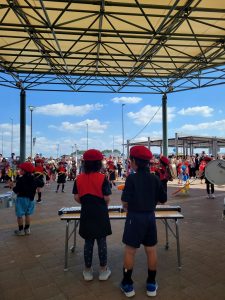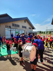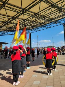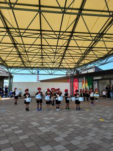 道の駅「まくらがの里こが」にて、鼓笛隊披露。